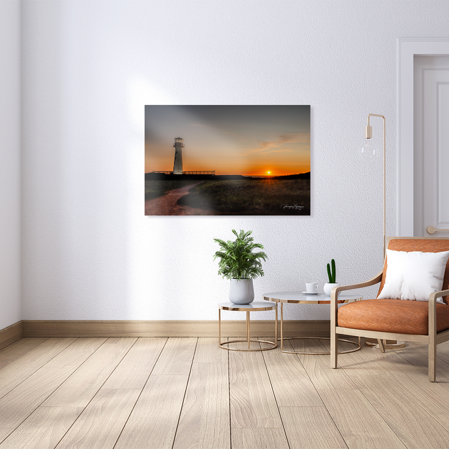Magnifique acrylique 16x11 du Phare le Borgot au coucher de soleil. Situé à l'Étang du Nord, sur l'Ile de Cap aux Meules. Très fréquanté par les touristes à cette occasion. Anciennement, il permettait aux pêcheur de s'orienter par rapport aux Iles.